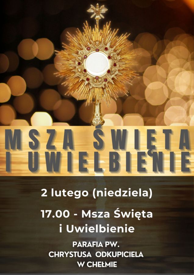 Zapraszamy Ciebie na ten czas uwielbienia. 2 lutego zaczniemy od Mszy Św. o g. 17.00 by później przy wystawionym Najświętszym Sakramencie wychwalać Go za to co Uczynił dla nas. Przyjdź i uwielbiaj z nami!
